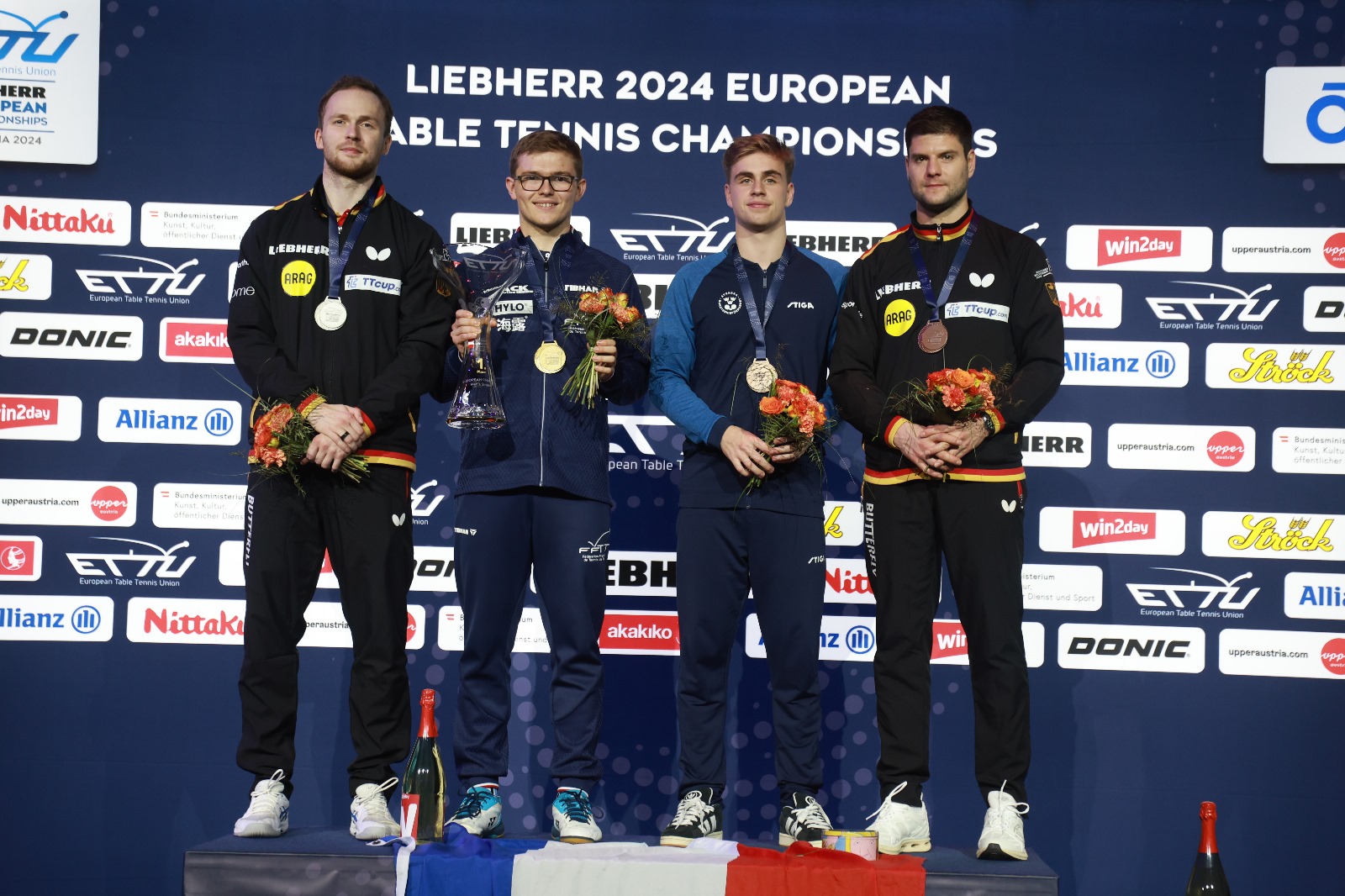 Alexis LEBRUN clinched the gold medal in the Men’s Singles event at the LIEBHERR European Championships in Linz. In the final he defeated Benedict DUDA of Germany in straight games. This victory marked LEBRUN’s second title in Linz following his doubles success with his brother Felix. The bronze medalists were Dimitrij OVTCHAROV of Germany and Truls MOREGARD of Sweden. After his win against DUDA Alexis expressed his joy: “I played the best table tennis of my life throughout the whole tournament. I studied DUDA’s matches very thoroughly and prepared for this. It’s unbelievable what I feel now ” said LEBRUN. Dimitrij OVTCHAROV a two-time European champion (2013 in Schwechat and 2015 in Ekaterinburg) silver medalist in singles in 2020 (Warsaw) and bronze medalist from 2007 (Belgrade) could not halt DUDA’s progress to the semifinals. After a breathtaking victory over Felix LEBRUN Benedict DUDA defied the odds and defeated OVTCHAROV in six games. “Yesterday’s match against Felix gave me so much confidence and I already felt good during the warm-up. My movements were smooth and my legs were fast even though I was a bit tired. I’ve never played so well against Dima not even in training. This is also my first official win against him. Dima fights for every ball and it’s hard to break him down. I had to reset after every game from 3-0 as if it was starting all over again. Now I’m in the final and I want to take it a step further. But the next challenge is tough—I’ve recently lost to both Truls and Alexis. I didn’t expect to reach the final especially after being injured for a long time and my international performances and games in the TTBL weren’t great. But I trained really well before the European Championships and just fought my way through round by round ” said DUDA. OVTCHAROV remarked: “Benne played phenomenally—I didn’t think I was playing badly but he was really strong and dominant in the rallies. I couldn’t break through and I became a bit frustrated. I tried to push even harder and started to get more into the game even leading 8-7 in the sixth set. If I had won just one more point there… But he’s the well-deserved winner today. I touched the table with my racket and there was a small dent. I felt like I was hitting that spot on my tomahawk serve. In tennis changing rackets is common practice so I don’t understand why it’s not allowed in table tennis. It’s a strange rule. The disappointment is big because I played very well last night. But that’s sports. I’ve had the privilege of winning this title twice. Still the medal is a nice achievement.” Alexis LEBRUN was in top form in the semifinals rushing into the final stage with a decisive victory over Truls MOREGARD of Sweden. “I am feeling so fresh and full of adrenaline. Despite all the important matches today being in two finals is amazing. I had an unbelievable tournament. I had a dream summer. I played a medal match at the Olympics and now I’m in the European Championships final—it’s fantastic. It’s incomparable. I just play my game and enjoy the finals ” said Alexis. LEBRUN and MOREGARD had met eight times before with the Swede holding the upper hand but today Alexis controlled the match from start to finish. “I entered the match hoping to win 4-0. Of course it’s not always expected especially since our last match was very close. Every time it’s difficult to play against him. Maybe I surprised him because last time my game was not on this level. I tried to be aggressive and very strong in my service receive game—especially the receive because that is most important ” said Alexis LEBRUN. Final Benedikt DUDA (Germany) – Alexis LEBRUN (France) 0-4 (5-11 8-11 6-11 2-11) Semi final Benedikt DUDA (Germany) – Dimitrij OVTCHAROV (Germany) 4-2 (11-8 11-8 11-5 8-11 6-11 11-8) Alexis LEBRUN (France) – Truls MOREGARD (Sweden) 4-0 (12-10 11-5 11-5 11-6)