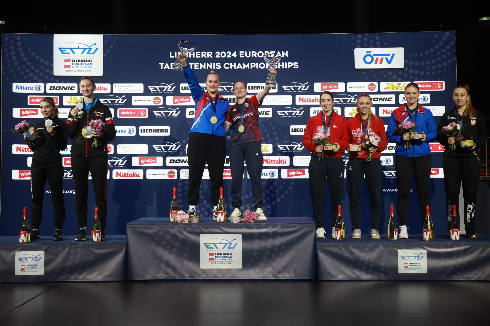 Hana MATELOVA of Czechia and Barbora BALAZOVA of Slovakia clinched their first-ever medal together at the Continental Championships. At the LIEBHERR European Championships in Linz MATELOVA and BALAZOVA triumphed over reigning champions Sofia POLCANOVA of Austria and Bernadette SZOCS of Romania. The bronze medals went to Izabela LUPULESKU and Sabina SURJAN of Serbia and Natalia BAJOR of Poland and Tatiana KUKULKOVA of Slovakia. In her third European final BALAZOVA made history by securing Slovakia’s first European title. After losing the mixed doubles finals in 2013 and 2020 she finally claimed victory. For MATELOVA it marked her second European title and a significant win for Czechia having previously won the mixed doubles title in 2013 (ironically against BALAZOVA). The final was intense but the Czech-Slovak pairing always seemed one step ahead. “This was our best match here. Even we were impressed with our performance in the final. We had never won a medal before at the Europeans and we’ve been playing together since 2011 in Herning. For sure the experience of playing finals was on their side. POLCANOVA especially since she knows how to handle the pressure of the final stage having been there three times before ” MATELOVA said. Sometimes experience can also be a burden making it harder to carry. “They were nervous especially in the opening games while we were more relaxed. Before the match we just said ‘Let’s fight and see what happens.’ We stuck to our game plan ” added MATELOVA. BALAZOVA shared her thoughts about her nerves before the match. “Five minutes before the match I told Hana that I was nervous but she calmed me down. Even if we lost we had already achieved a lot by winning a silver medal. So I just wanted to give my best without feeling the pressure of the result. We had a rocky path throughout the entire tournament with a really tough draw. From round one it was challenging. Also we weren’t sure if this would be our last European Championship so we just wanted one medal to say goodbye. But to win gold—it’s unbelievable.” Reflecting on their challenging path MATELOVA added “The first match was the hardest. We faced Charlotte LUTZ and Jia Nan YUAN of France. It couldn’t have been a tougher start but we managed to beat them 3-0. Strangely my defeat in singles helped me focus entirely on doubles and I had plenty of rest between matches allowing me to prepare in peace. Yesterday’s match against Natalia BAJOR and Tatiana KUKULKOVA was also incredibly difficult. They had a 2-0 lead and two match points ” MATELOVA recalled. BALAZOVA also shared a personal anecdote: “After I lost in singles to LUTZ without much of a chance my fiancé told me ‘Maybe it’s for the best because you might become the European champion in doubles.’ That idea stuck in my mind and I thought about it before the final. For me the toughest match was the quarterfinal against BERGSTROM and KALLBERG when we finally secured our medal.” Women’s Doubles final: Sofia POLCANOVA Bernadette SZOCS (Austria Romania) – Hana MATELOVA Barbora BALAZOVA (Czechia Slovakia) 2-3 (7-11 11-7 9-11 11-7 6-11) Semi final Sofia POLCANOVA Bernadette SZOCS (Austria Romania) – Izabela LUPULESKU Sabina SURJAN (Serbia) 3-2 (10-12 11-4 11-5 5-11 11-3) Natalia BAJOR Tatiana KUKULKOVA (Poland Slovakia) – Hana MATELOVA Barbora BALAZOVA (Czechia Slovakia) 2-3 (11-8 11-5 12-14 5-11 11-13)