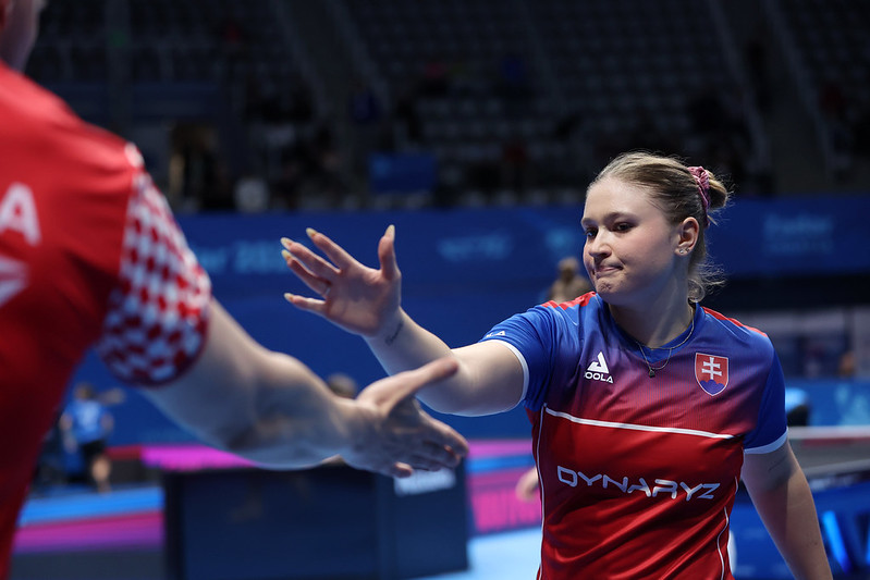 Slovakia advanced to the next round, while Croatia’s campaign came to an emotional close in front of their home supporters. Barbora VARADY, Tatiana KUKULKOVA, and Ema LABOSOVA produced a spirited performance to defeat Hana ARAPOVIĆ, Lea RAKOVAC, Ivana MALOBABIĆ 3–1.