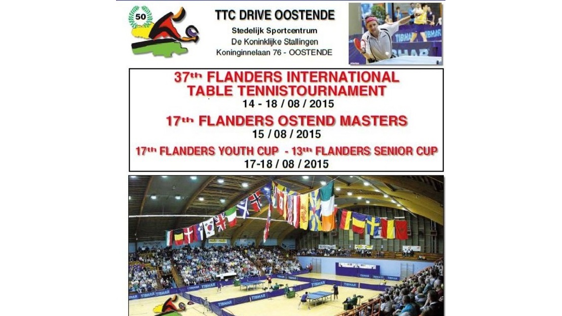 The 17th Flanders ITT Ostend Masters is on Saturday 15 August 2015 with Jean-Michel Saive The 37th Flanders International Table Tennis Tournament will be held in Oostende.