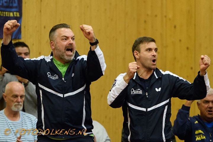 Mayor Charlie APTROOT of Zoetermeer send congratulations to the team shortly after reaching the 3rd round in the ETTU Cup with a nice hint to the European ambitions of the club in his sportminded city. President Jacob de BOER and team manager Ruud van GRAAFEILAND still have the 2014/2015 quarterfinals in mind as a good example of what might be possible.