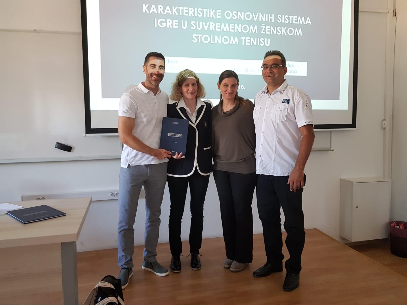 Tamara successfully defended her master thesis “Characteristics of basic playing systems in modern table tennis women’s game” under the mentorship of Prof. Goran MUNIVRANA and has earned her Master degree in Sports coaching (with additional specialisation in table tennis coaching).