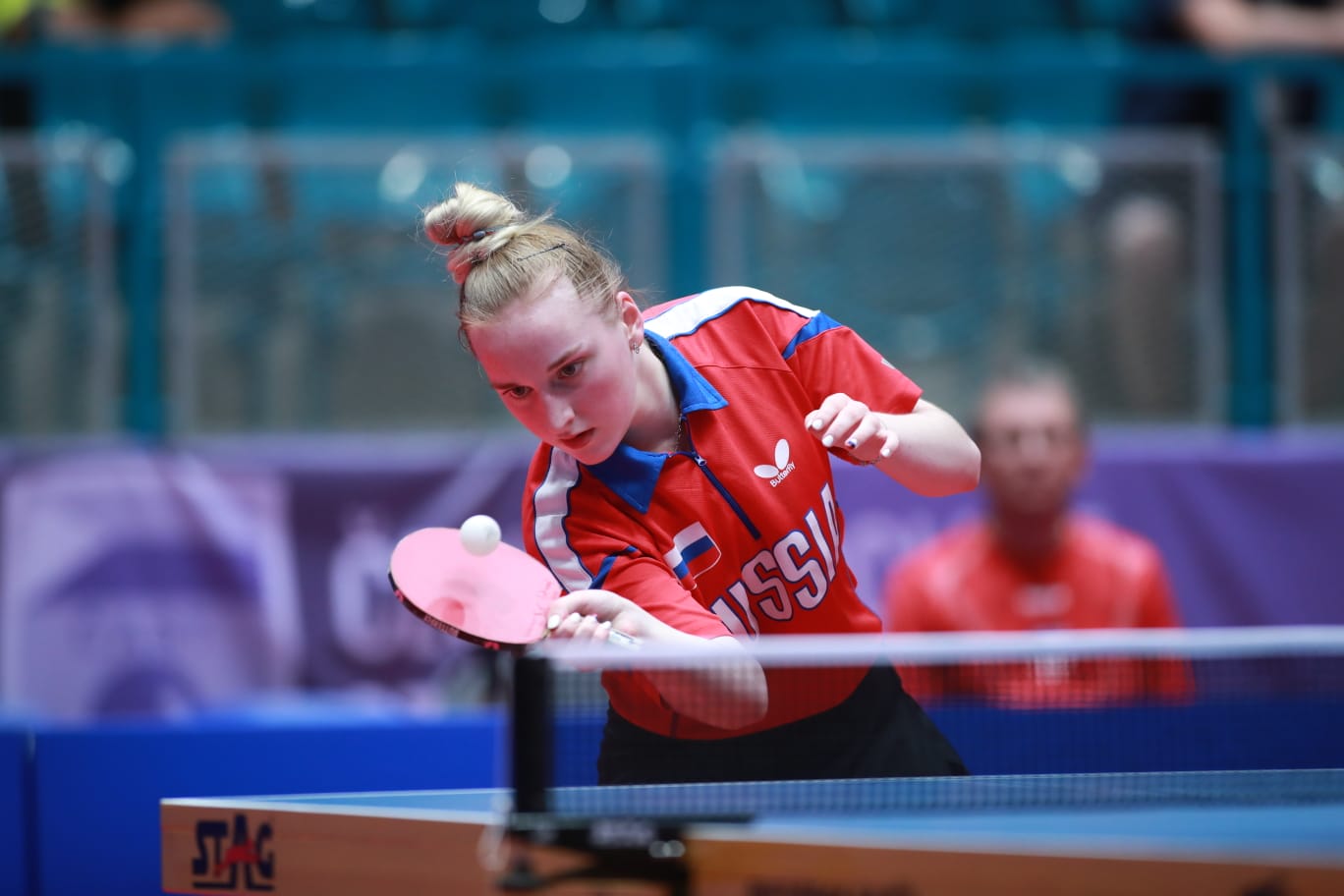 ZAHARIA overcame Alina ZAVARYKINA of Russia in five games (11-7 9-11 11-9 11-9 11-8). Vlada VORONINA of Russia overcame Naomi PRANJKOVIC of Germany in six games (11-9 11-6 7-11 4-11 11-8 13-11).