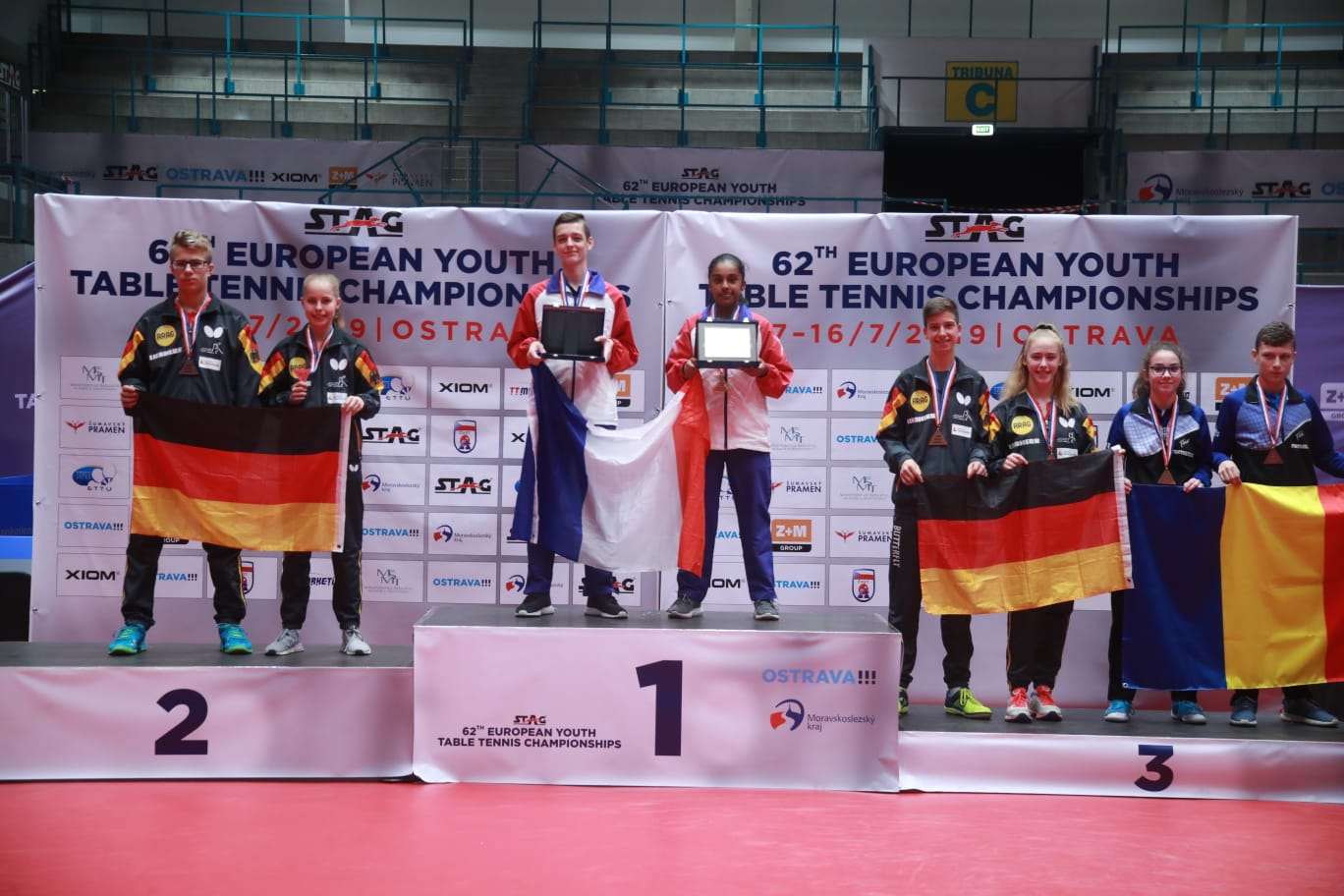 Thibault PORET and Prithika PAVADE of France clinched the gold medal in the Cadet Mixed Doubles Event at the 2019 STAG European Youth Championships in Ostrava. In the final they overcame Mike HOLLO and Annett KAUFMANN of Germany (11-4 5-11 1-11 8-11).