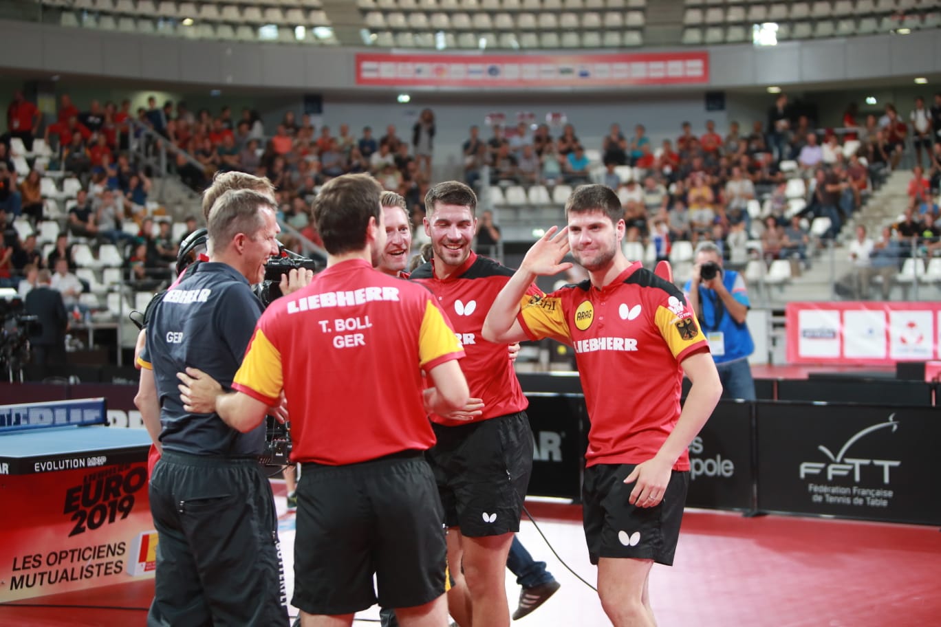 Germany won eight title in Men’s Teams Event and made it second time in the row at the LIEBHERR European Championships. In Nantes they overcame Portugal and it was their fifth match at the Championships and fifth victory. In addition neither of three players Timo BOLL Dimitrij OVTCHAROV and Patrick FRANZISKA had felt the bitterness of defeat in singles match on their way to the new crown. They maintained the unbeaten status in six days tournament.