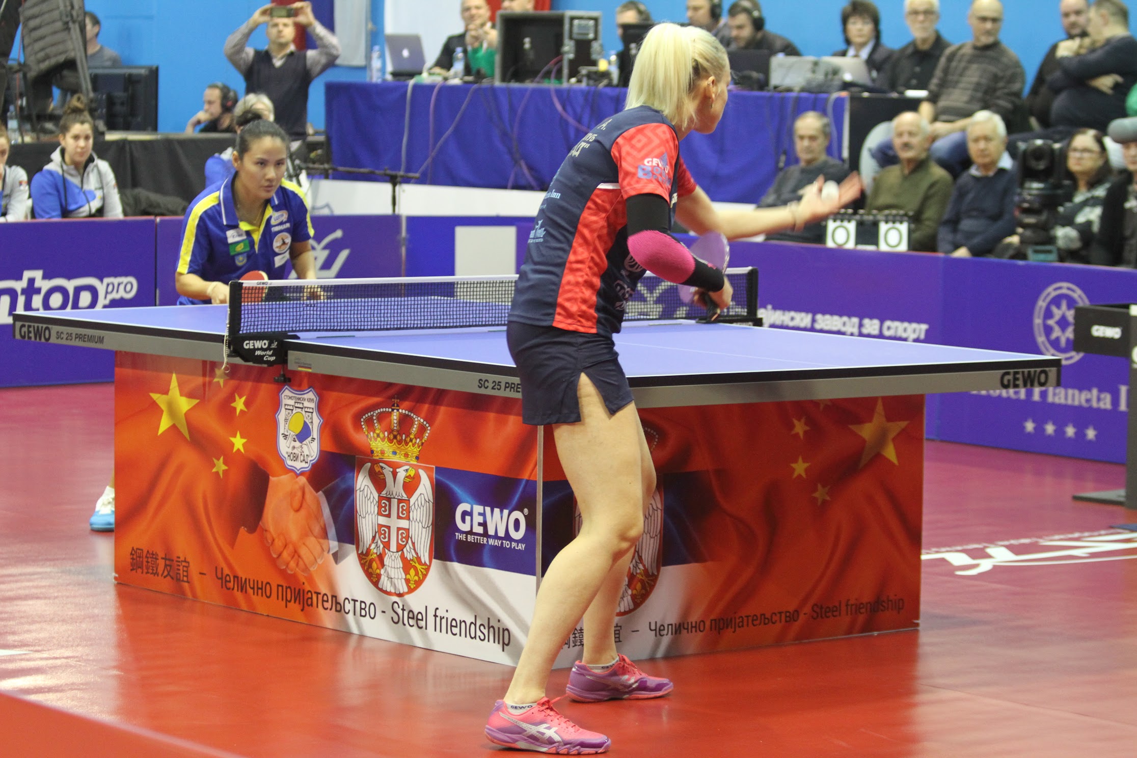 In furious style guests did not leave the chance to Serbian champion. Annamaria ERDELYI lost to YANG Xiaoxin (4:11 2:11 9:11) Tijana JOKIC suffered by the hands of HAN Ying (6:11 9:11 3:11) and Aneta MAKSUTI lost to Elizabeta SAMARA (9:11 6:11 5:11).