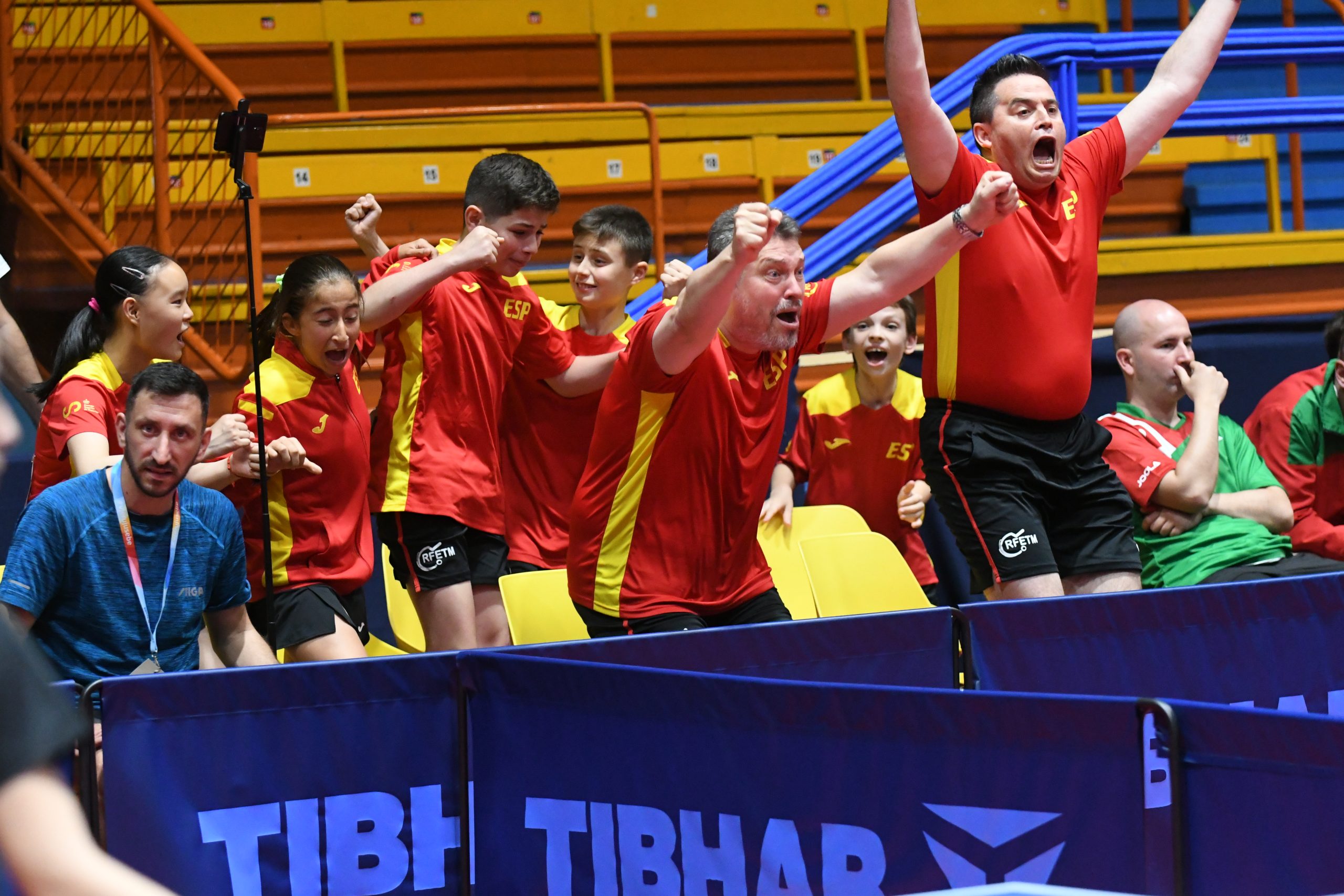 Spain reached the penultimate stage undefeated after six matches and two stages of the group phase. Ladimir MAYOROV Roger QUESADA Renata SHYPHA Jiaqi GUO and Roc GILBERT overcame Germany (3-2) Bosnia and Herzegovina (5-0) and Moldova (5-0) in the opening stage. Without much trouble they also defeated Switzerland (5-0) but faced a tough challenge against Israel (3-2). However the real drama unfolded in the last match when Spain played against Hungary for a place in the semi-finals.Three out of five matches went the full distance including the final duel between MAYOROV and Lenard SZABO. The Hungarian player eventually won and despite Spain already securing 3 points and the overall victory Szabo and Mayorov fought fiercely until the last point.
