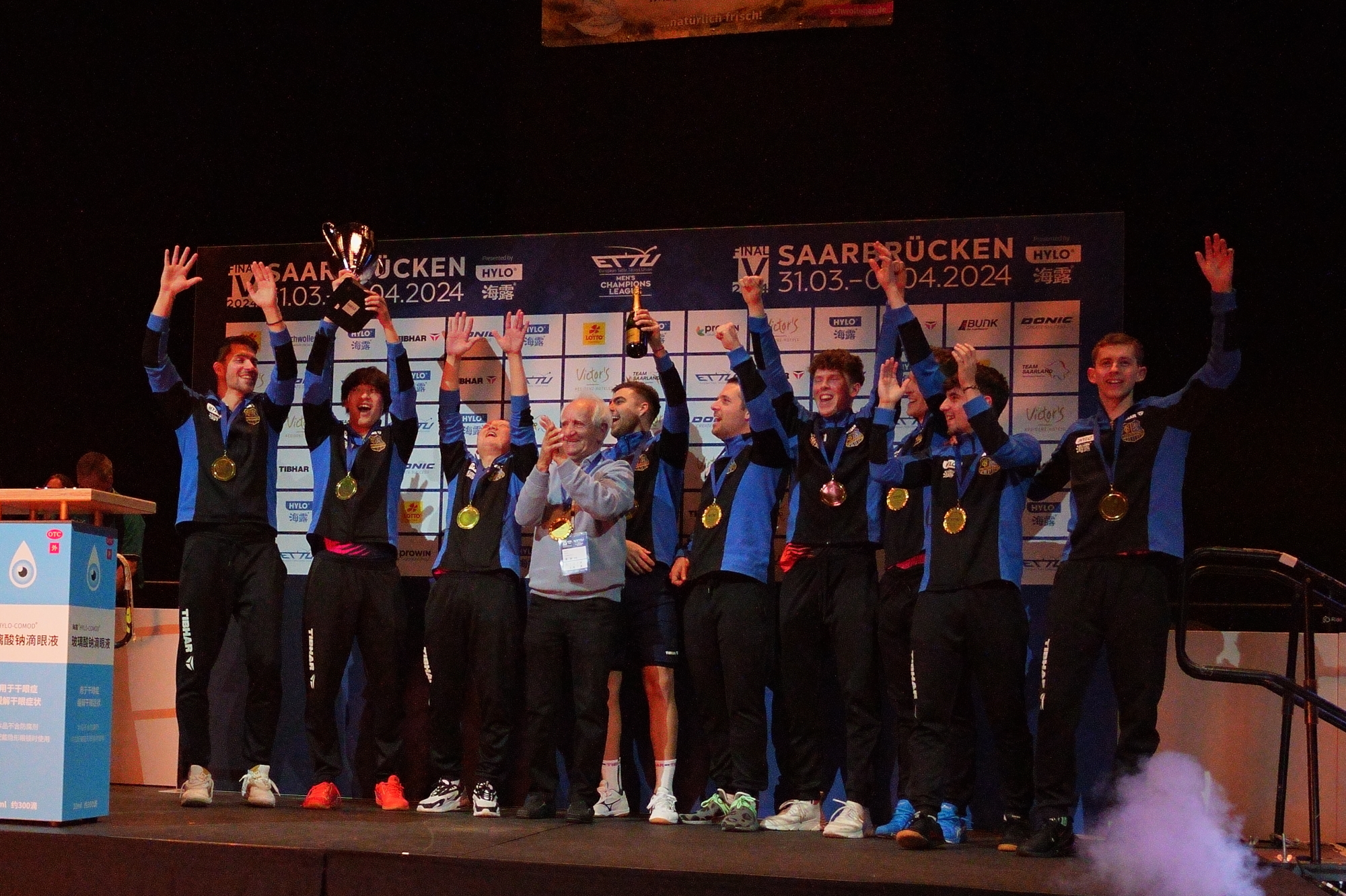In a fantastic and ecstatic atmosphere in front of 2 450 spectators at the Saarlandhalle in Saarbrücken FC Saarbrücken TT e.V. defended the title in the Champions League men in the ultimate match at the first-ever Final 4. The seven-time winners Borussia Düsseldorf were halted after 3.5 hours of breathtaking rallies and extraordinary points.