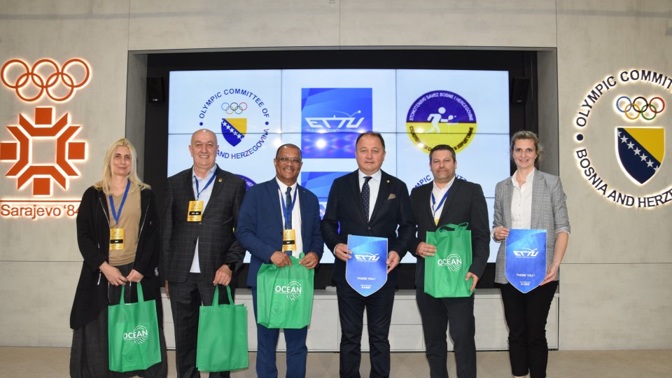 During the 2024 European Olympic Singles Qualification the ETTU delegation represented by ETTU Vice President Miguel VICENS and Secretary General Pierre KASS received an invitation to the Bosnia and Herzegovina Olympic Committee where they engaged in a productive morning of work. Dr. Sci. Said FAZLAGIC the Secretary General of the BiH Olympic Committee along with Senior Expert Associate for Sport International Relations and Projects Dejana PLANINCIC warmly welcomed the guests who were accompanied by Mirsad PAJEVIC President of the BiH Table Tennis Association.