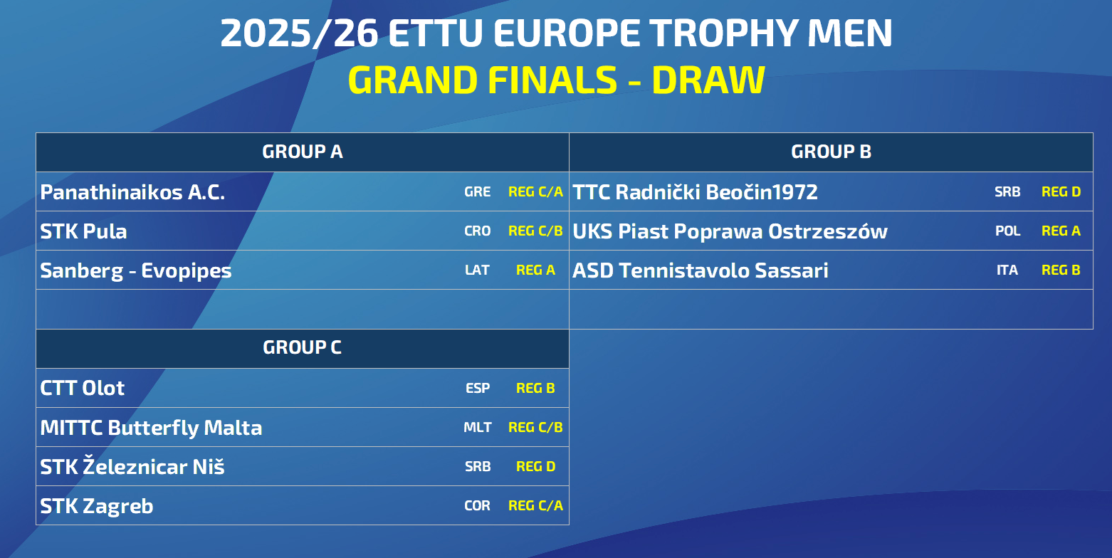 ETTU accepts participation in the Europe Trophy in addition to the relegated teams from the Europe Cups group stage 1 3rds, 4ths and 5ths also the group stage 2 3rds and 4ths.