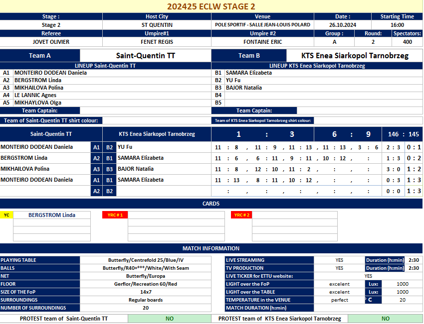 | 01.11.2024. | 19:30 | Saint Quentin | Saint Quentin (FRA) | vs | Novi Sad TT (SRB) | 3:0 |