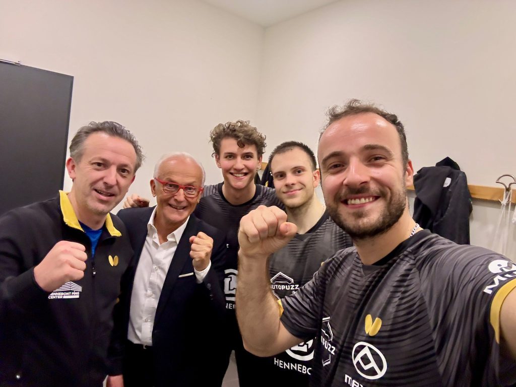 The match opened with a strong start for the hosts. Hiroto SHINOZUKA produced a high-quality performance to defeat French star Simon GAUZY in four games, giving Grünwettersbach an early 1–0 lead. Hennebont responded immediately. Vladimir SIDORENKO fought through two tight games to overcome Tiago APOLONIA 3–1, levelling the score and swinging the momentum back to the French side. The visitors then moved in front thanks to a commanding display from Lev KATSMAN, who dominated Tobias HIPPLER in straight games to put Hennebont ahead 2–1.