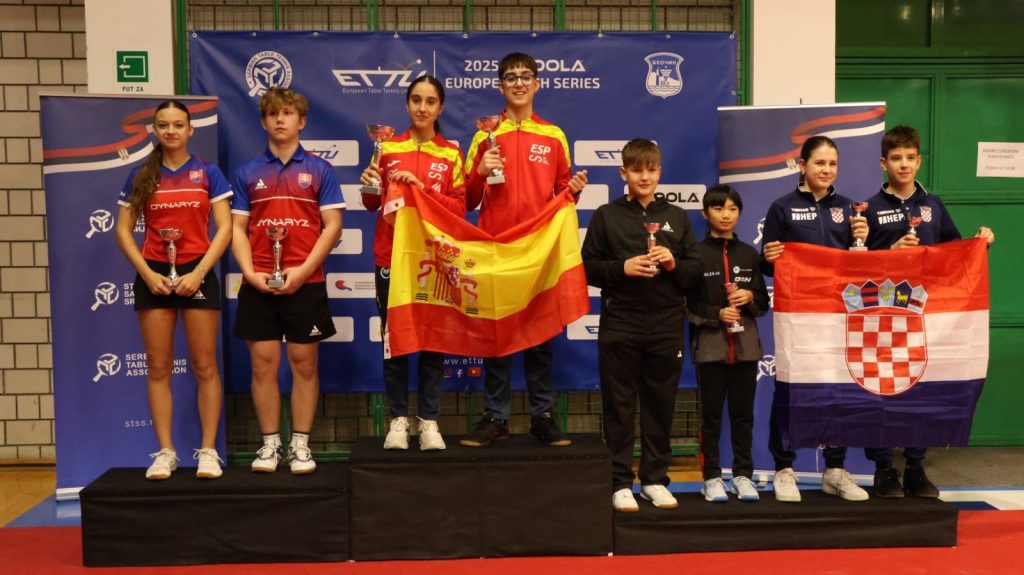 Earlier, the Spanish pairings swept Elina HU (SUI) and Milan VUČETIĆ (MNE) in straight games (11–4, 11–8, 11–9). On the opposite table, NAGY and BACSOVÁ edged Croatia’s Karla IVČIĆ and Ivan SMILJANIĆ 3–2 (10–12, 12–10, 9–11, 11–5, 11–6).